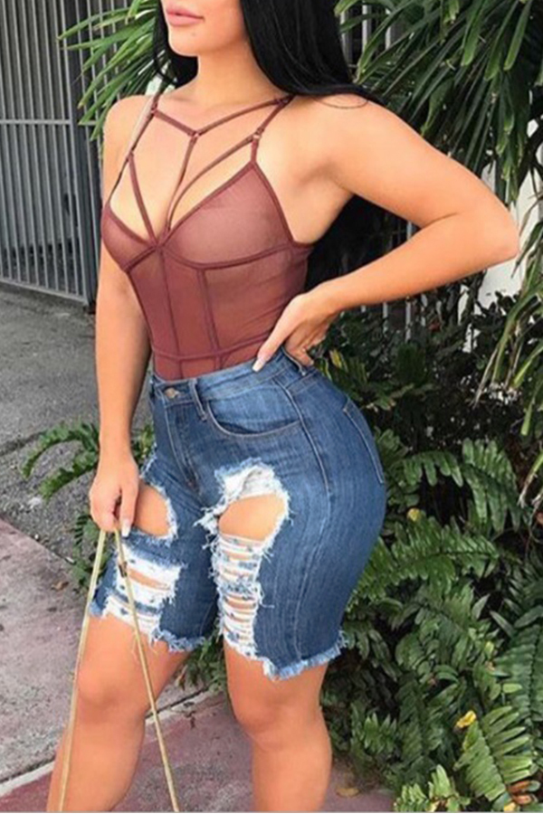 High Waist Denim Ripped Shorts