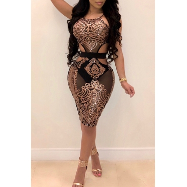 Sexy Sequin Rose Gold Dress, This Dress Is Polyester Material
